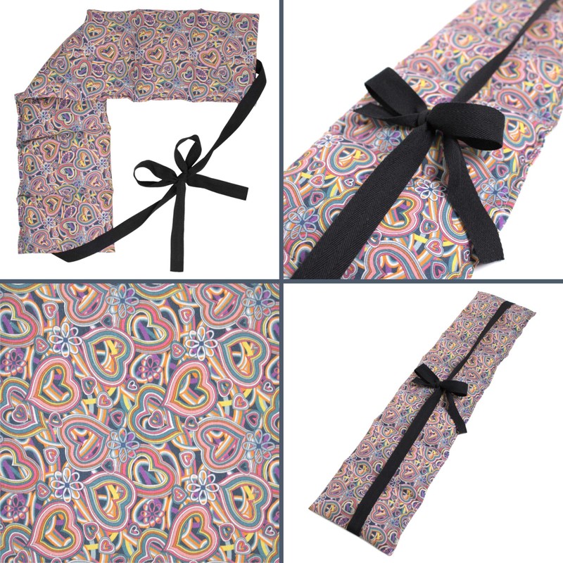 Organic Spelt Cushion 7 Chamber with Ribbon, 65 x 15 Organic Fabric "Psychedelic Heart" - Heat Belt, Long Cushion for Tying Back