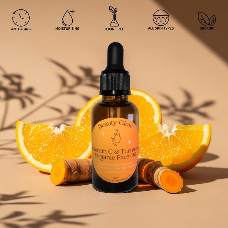Organic Tumeric & Vitamin C Face Oil for Dark Spots Brightening Age Defying for Fine Lines & Wrinkles Moisturizing Hydrating Serum Natural Anti Aging 1 Oz Beauty Glow