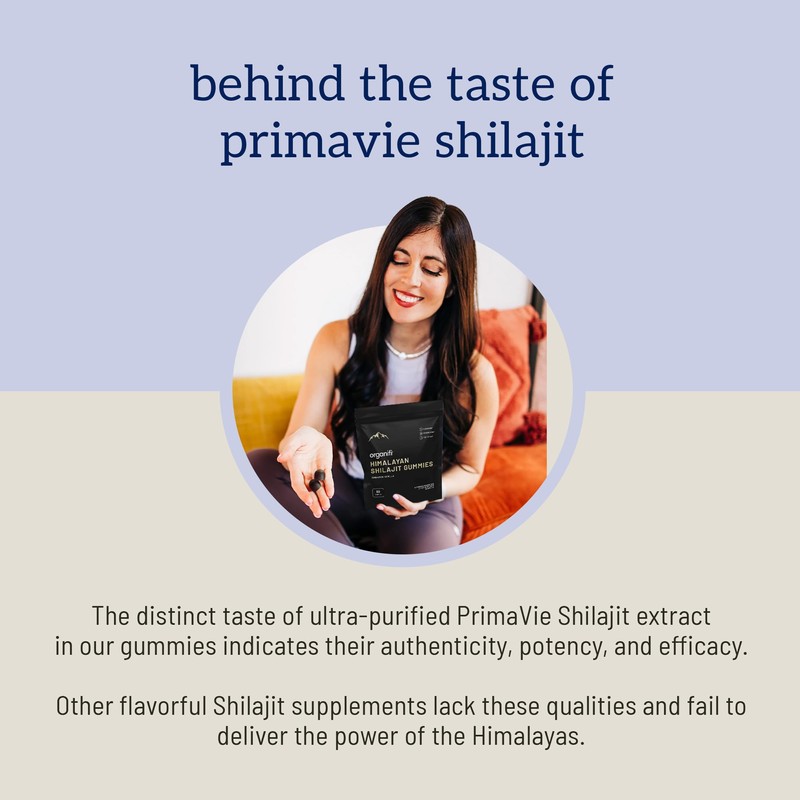 - Organic Shilajit Directions and Taste: Take 2 gummies daily or as directed by your healthcare provider to experience the health benefits of 250mg of PrimaVie organic Shilajit. Our gummies' distinct taste indicates authenticity and efficacy. Other flavorful Shilajit supplements lack these qualities and fail to deliver the power of the Himalayas. Keep Organifi Shilajit Gummies in your refrigerator to help improve their flavor.