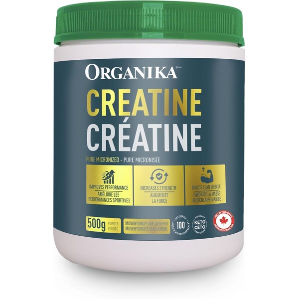 Organika Canadian-Made Creatine Powder- Pure Micronized Creatine Monohydrate - Helps Build Lean Muscle, Increase Strength, and Improved Recovery and Performance for Men and Women - 500g, 100 servings