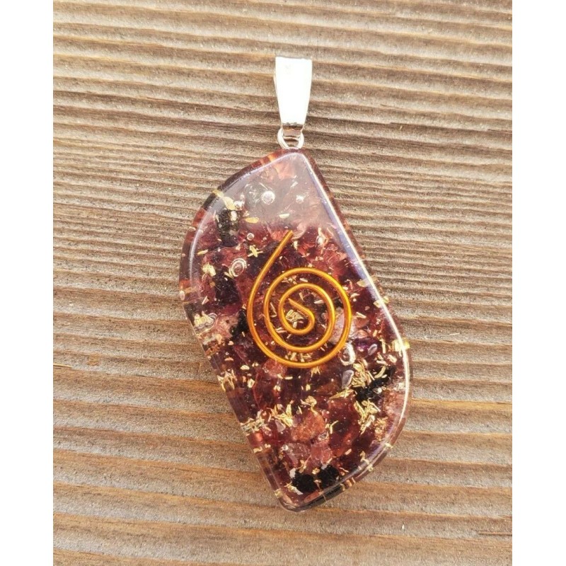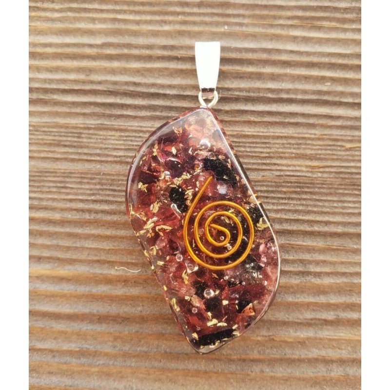 ORGONE GARNET GEMSTONE EYE SHAPED PENDANT ORGONITE (ONE)
