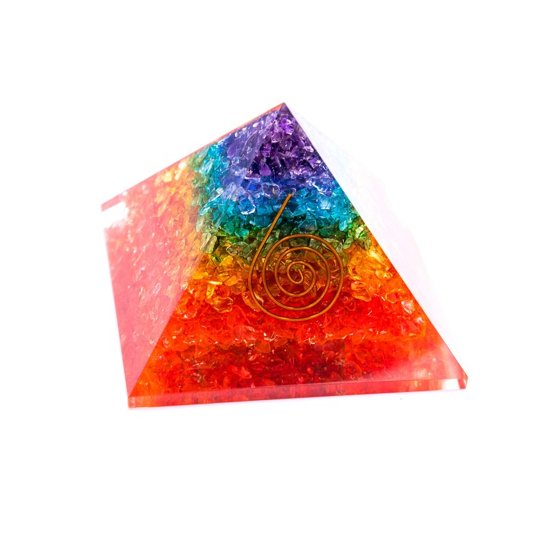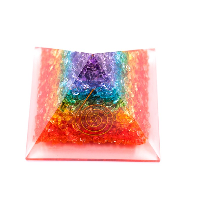 Beautifully crafted pyramid made of orgonite. Dimensions: approx. 7 x 7 x 5 cm.