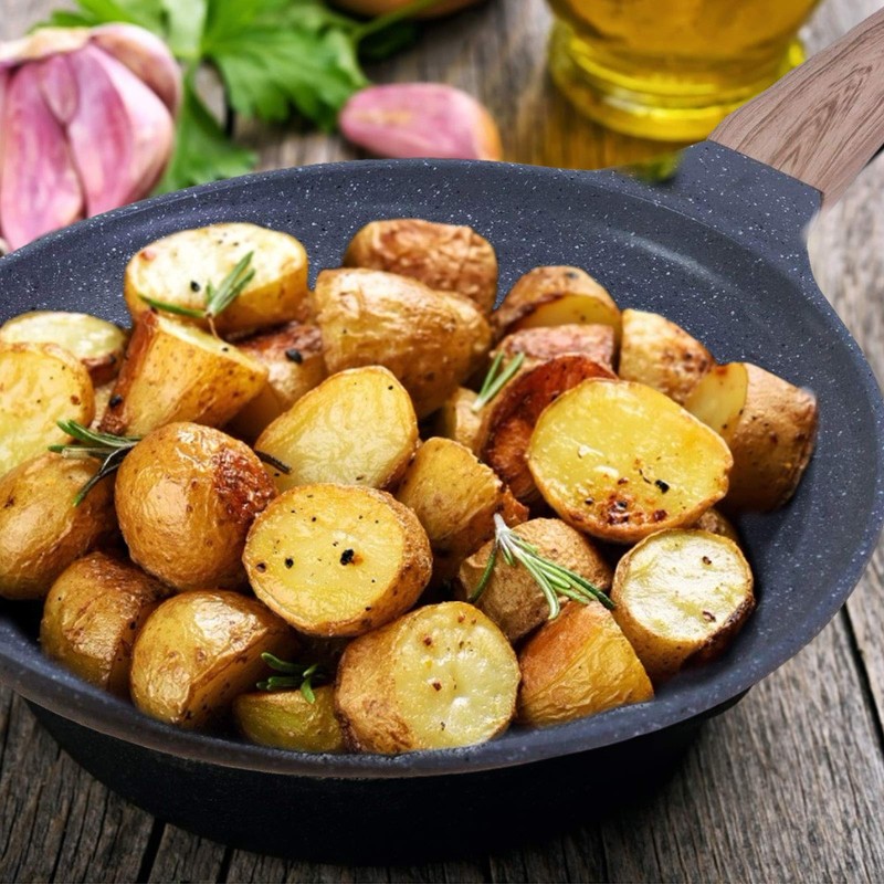 - NON STICK FRYING PAN Our pans are coated with maifanite. This stone material is free from harmful chemicals and is also environmentally friendly. The surface of the pan helps you cook safely and healthily and reduces the need for refilling.