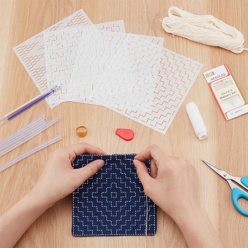 - Reusable Plastic Sashiko Stencil: This starter sashiko kit is with template in simple designs, Beginners can use the template to draw the pattern on the cloth, which is very helpful and you will create nice sashiko coasters by yourself with confidence!