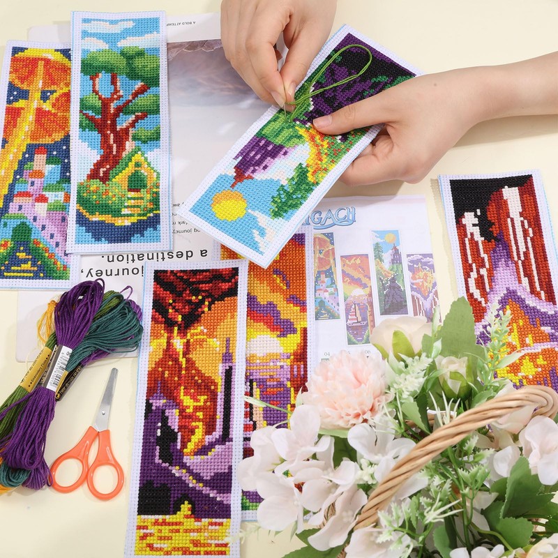 - Dream scene cross stitch bookmarks: the 6 cross stitch bookmarks are designed with 6 different multi-coloured dream scenes such as a magic castle. The rich colors and attractive patterns make the cross stitch bookmark kit more beautiful and exquisite.