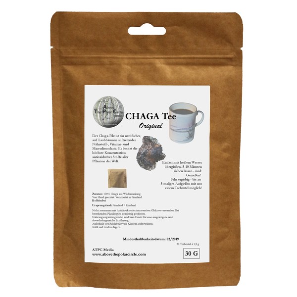 Ingredients: 100% chaga from wild collection. Harvested by hand. Made in Finland. Caffeine free