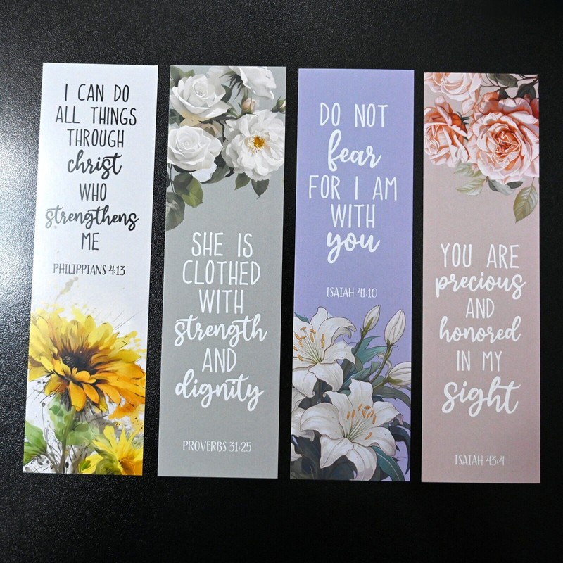 Embrace beauty and faith with the Grace in Bloom: 4 Piece Bible Verse Bookmark Set. This exquisite collection features four elegantly designed bookmarks, each showcasing uplifting scriptures that celebrate the grace and strength found in God’s love. Ideal for personal reflection or as a thoughtful gift, these bookmarks serve as daily affirmations of hope, joy, and resilience. Enhance your reading journey and keep your place in your cherished Bible or devotional with these inspiring symbols of faith.
