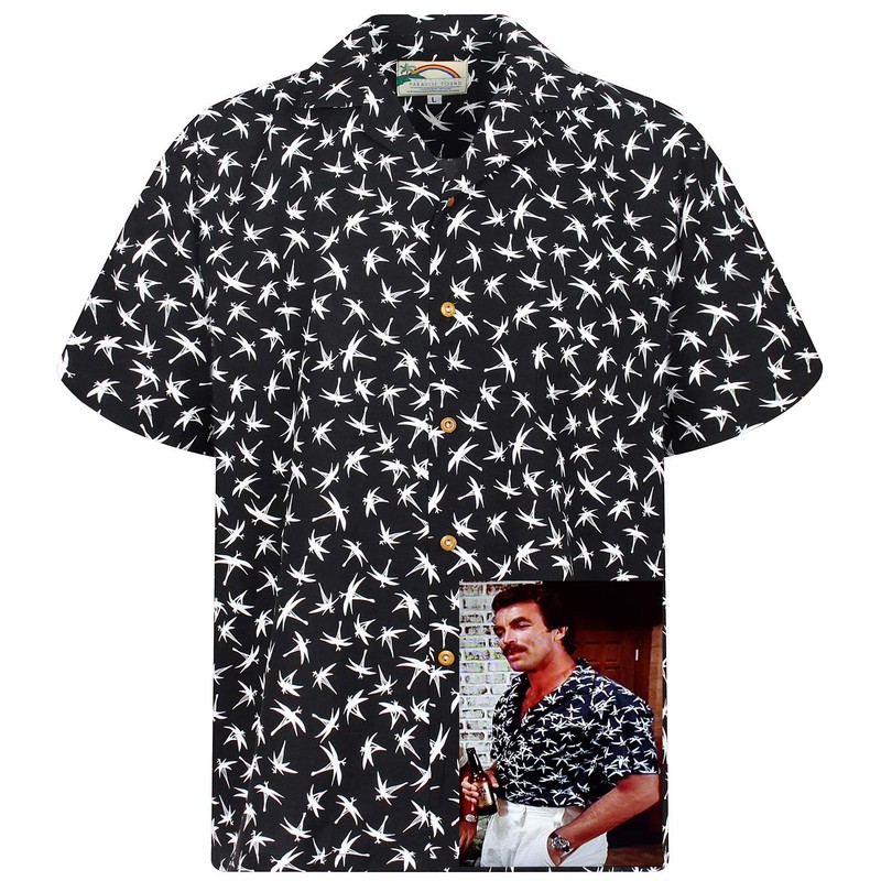 Original Hawaiian Shirt, Tom Selleck, Dragonfly, Black, XL