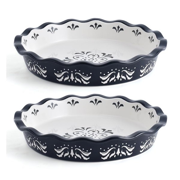 Original Heart Pie Pan Stoneware Pie Plate, 9 inch Deep Dish Pie Pans Pie Plates, Pie Dish for Baking, Nonstick Baking Dish,Set of 2,Black
