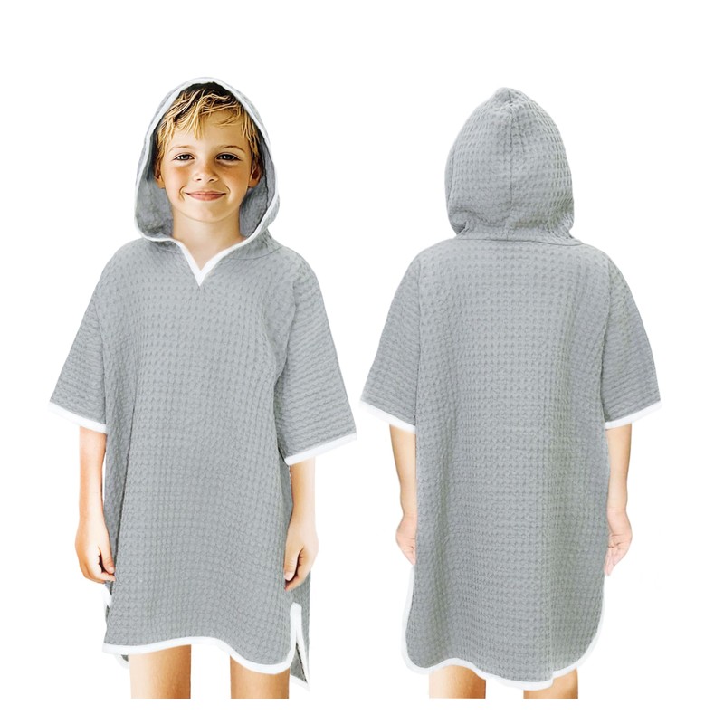 - Premium 100% Cotton Waffle Weave: Crafted from 100% pure cotton, this ORIGINAL KIDS poncho features a chic waffle weave pattern with a matching stylish border trim, offering exceptional softness, warmth, elegance, and functionality. With dimensions of 27 inches by 32 inches, this poncho is designed to provide a snug and secure fit for babies and toddlers 3 - 6 years old, ensuring they stay cozy without feeling restricted after water play. Medium - Grey