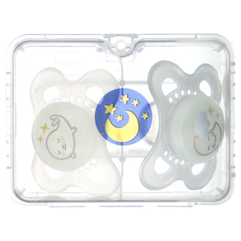 Since 1976 Glows In The Dark Developed With Dentist Made With Bio-Renewable Materials² 94% Nipple Acceptance Skin Soft™ Silicone BPA / BPS Free ¹ Symmetrical, Thin & Jaw-Friendly Nipple Developed with Medical Experts 3 Min Sterilizer Box Disinfects in 3 minutes for up to 48 hours. Saves up to 77% of energy and CO2. ¹BPA/BPS Free: This MAM product is made from materials free of BPA & BPA ²Shield, button & sterilizer box are made with bio-renewable materials.