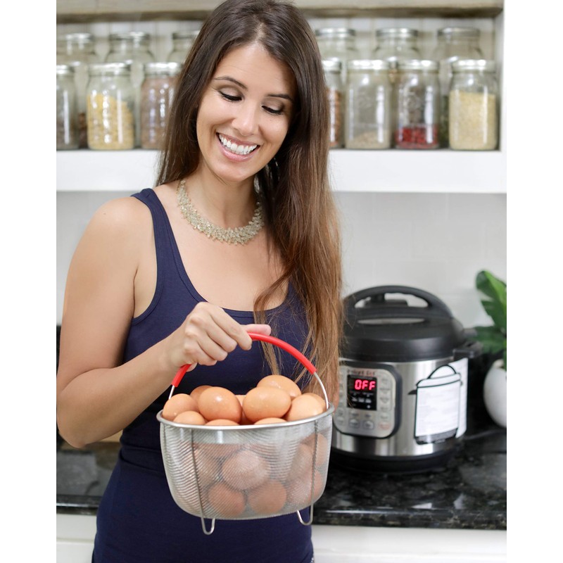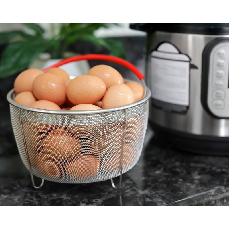 - CONVENIENT SINGLE-HANDLE DESIGN- Sometimes you only have one free hand, while cooking your eggs, meats or vegetables, our basket will allow you to lift the basket from the inner pot with one hand. Also features premium, red silicon-wrapped handle - for you comfort and convenience and fits neatly inside of basket, out the way for food.