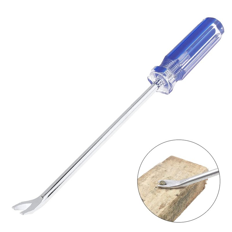 - √ Screwdriver Removal Tool - The V-shaped nail puller head design can easily and quickly slide into a narrow area to pry the nails up to improve work efficiency. Suitable for many types of round and square clips, fasteners and plastic rivets.