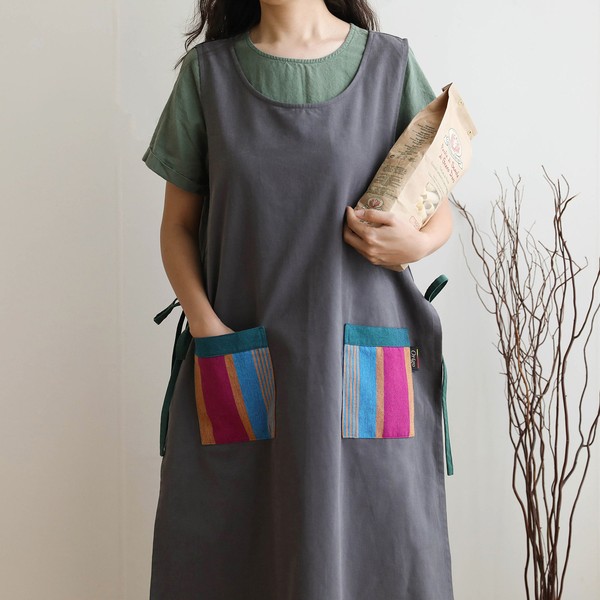 Origo slit dress apron charcoal gray / 오리고 트임 원피스 앞치마 차콜그레이