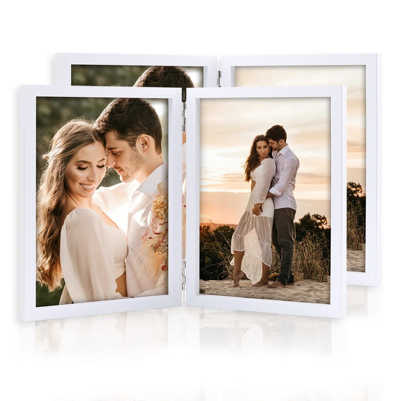 2 Pack 5x7Double Picture Frames. Specifications: Material: MDF and Glass. Color: White. Frame Size: 5.4x7.8x0.6 inch. Photo Size: 5x7 inch. Application: 1. Put in family photos, decorate your home and office, add warm sense. 2. Not only good for photos but also your poems, certificates etc. 3. As a gift for your family and friends. Quality Service: Any problem, please contact us at any time. We will solve it for you at the first time.