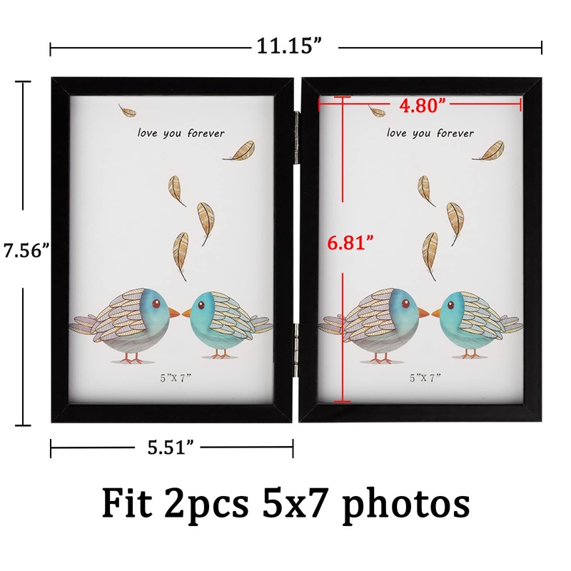 - [Double Picture Frames]: Fits two 5x7" photos side by side in a frame. 0.6" thickness vertical frame, can be stably placed on the table.