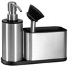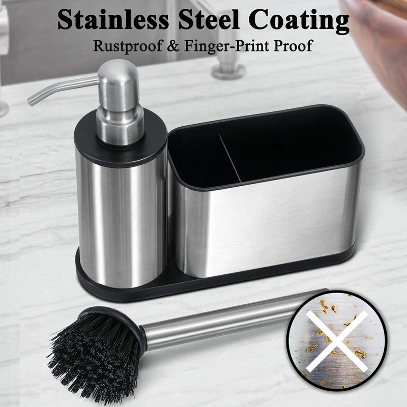 - 3-In-1 Design: This sink caddy includes 3 separate compartments which consist of a brush and a sponge compartment and a built-in soap dispenser for your dish soap. The brush compartment is convenient for holding multiple brushes and the other (larger) compartment is roomy enough for sponges. The sturdy soap dispense can remain long lasting bright and prevent corrosion or rust.