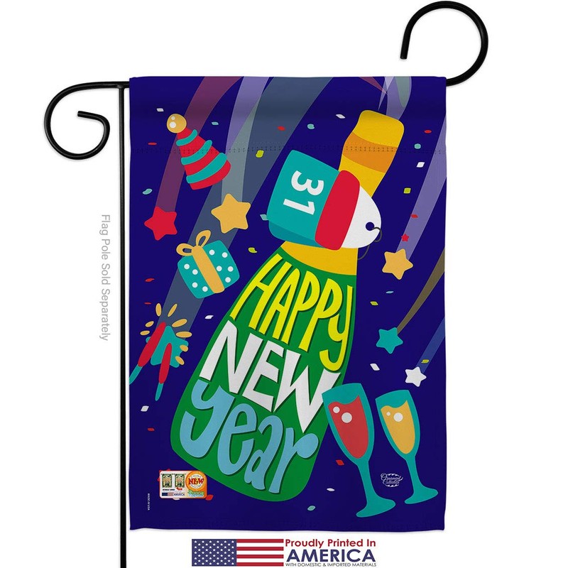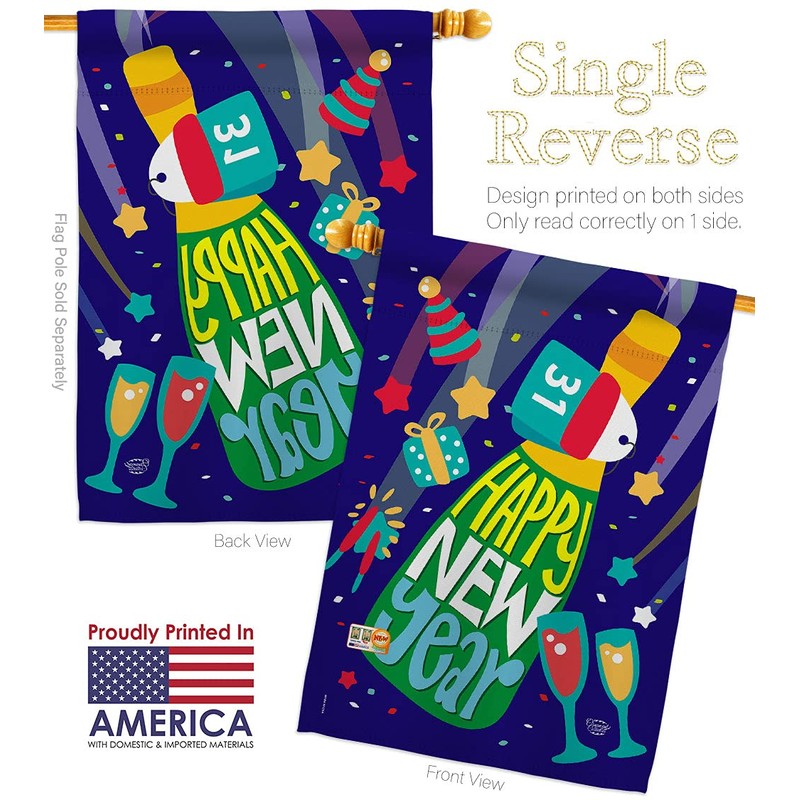 Ornament Collection FK192049-P3 Celebrating New Year Winter Impressions Decorative Vertical House 28" X 40" Garden 13" 18.5" Flags Kit w/Banner Pole Included Printed in USA