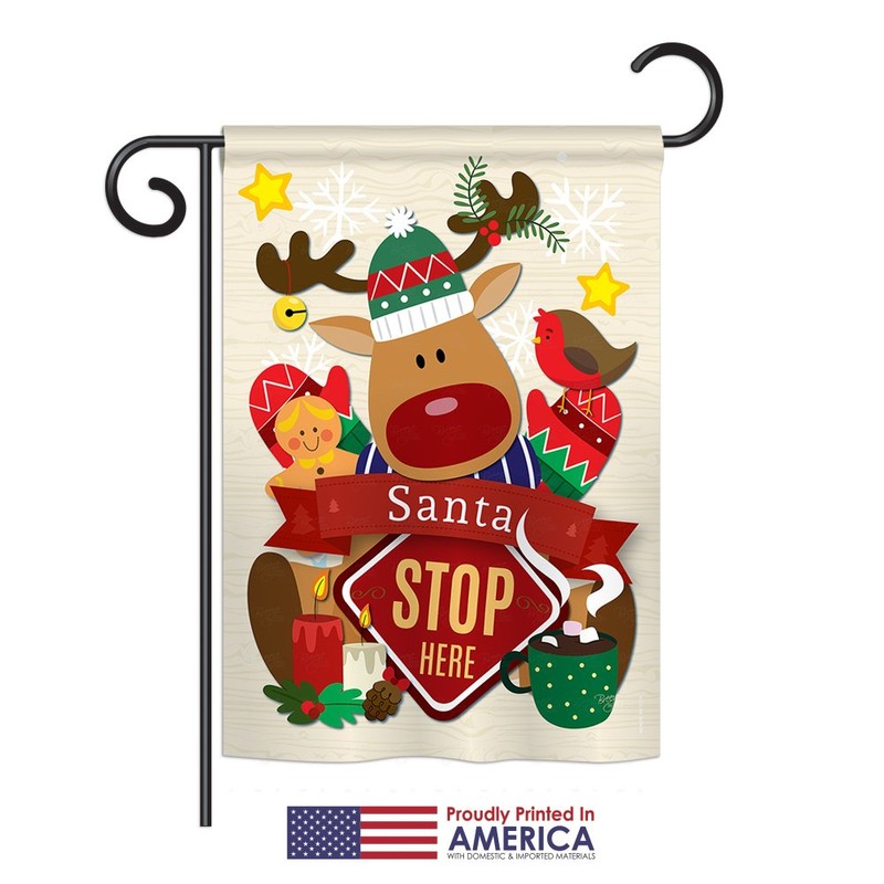 Ornament Collection FK192052-P3 Santa Stop Here Winter Christmas Impressions Decorative Vertical House 28" X 40" Garden 13" 18.5" Flags Kit w/Banner Pole Included Printed in USA