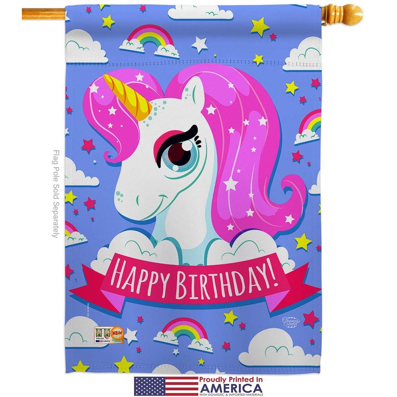 Ornament Collection S192067-P3 Magical Unicorn Birthday Special Occasion Party & Celebration Impressions Decorative Vertical House 28" X 40" Garden 13" 18.5" Flags Set Printed in USA