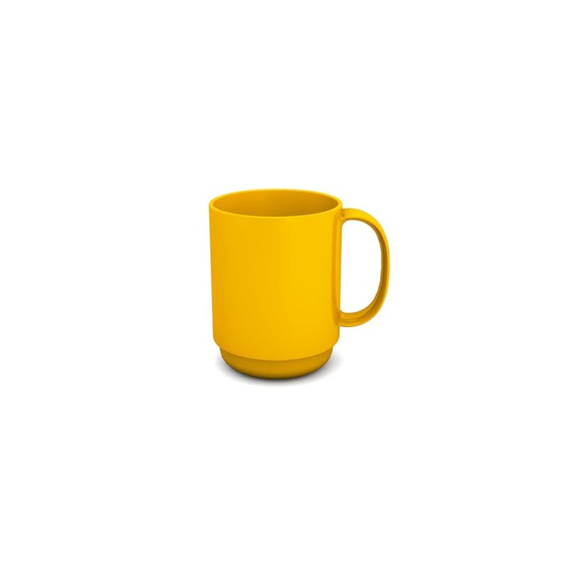 - classic mug made of high-quality plastic is space-savingly stackable, virtually unbreakable, shatterproof, reusable, durable and light