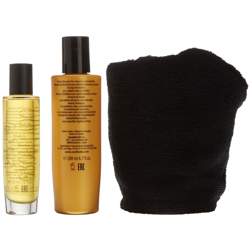 - Discover this Orofluido Overnight Beauty Ritual Hair Care Set Argan Oil Elixir protects the hair without weighing down and nourishing. The shampoo provides incredible shine and softness for your hair. Its formula protects the colour of your hair by applying a protective film without weighing the hair. The Orofluido shampoo cares for the hair fibre thoroughly. High formula