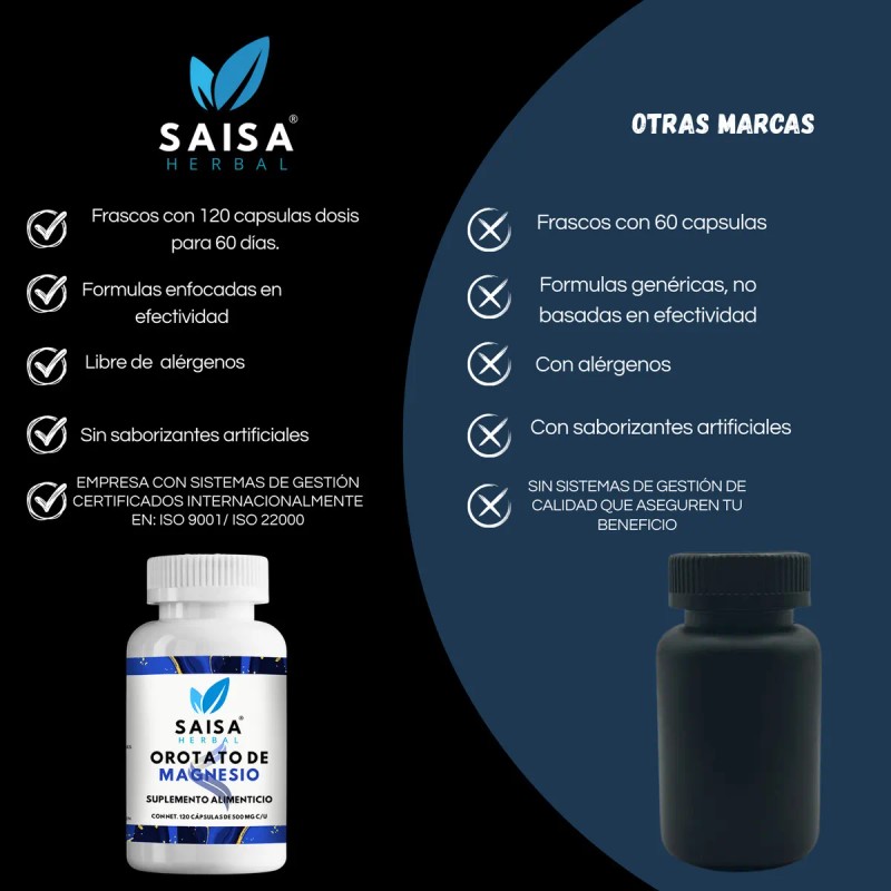 Orotato De Magnesio 100% Puro De 120 Cápsulas Saisa Herbal Sabor Sin Sabor