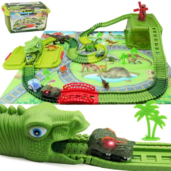 - Perfect Gift for Curious Kids (Ages 3+):Whether it’s for a birthday, holiday or just because.This dinosaur race track set is a guaranteed hit! It encourages creativity, fine motor skills, hand-eye coordination and cooperative play.