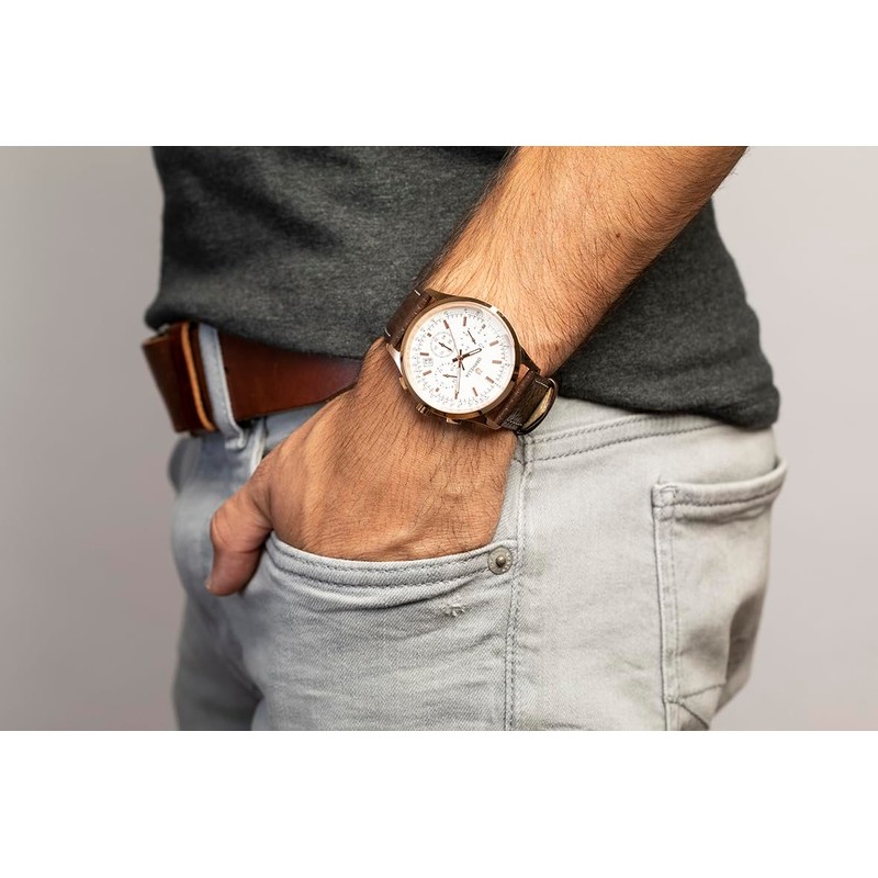 • Great design: multi-dial watch with sturdy quartz movement. The watch has a calendar function: date, luminous hands, dual time, 24-hour display.