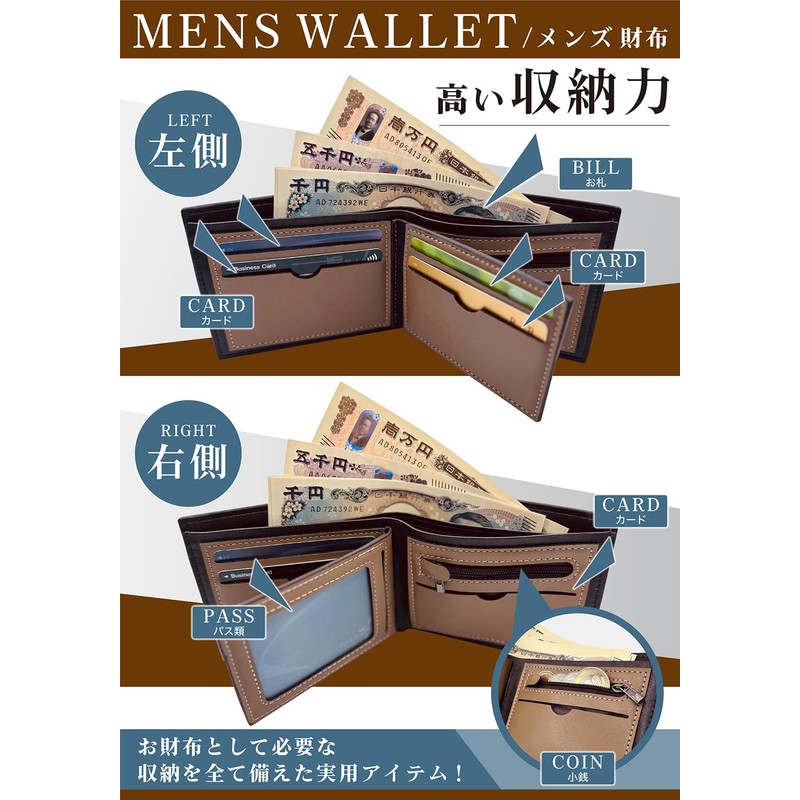- This stylish men's wallet is compact and bi-fold type, with a sophisticated body and high storage capacity