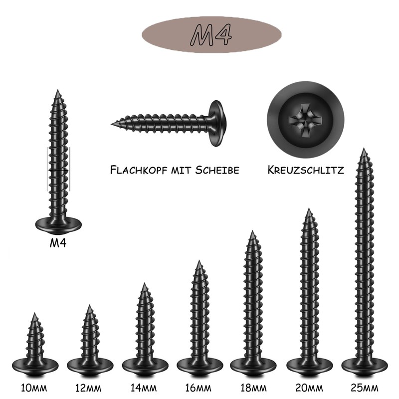 • Package contents: you will receive a set of 50 self-tapping screws black M4 x 14 mm and 1 drill