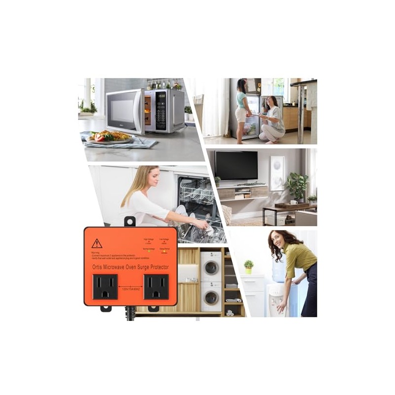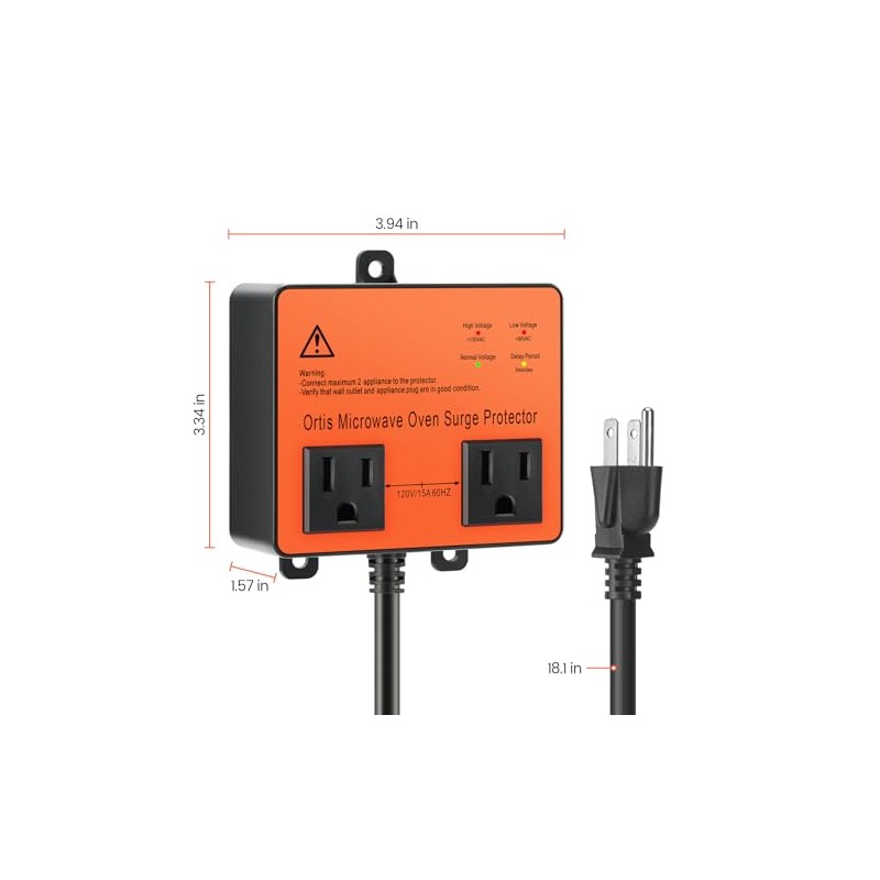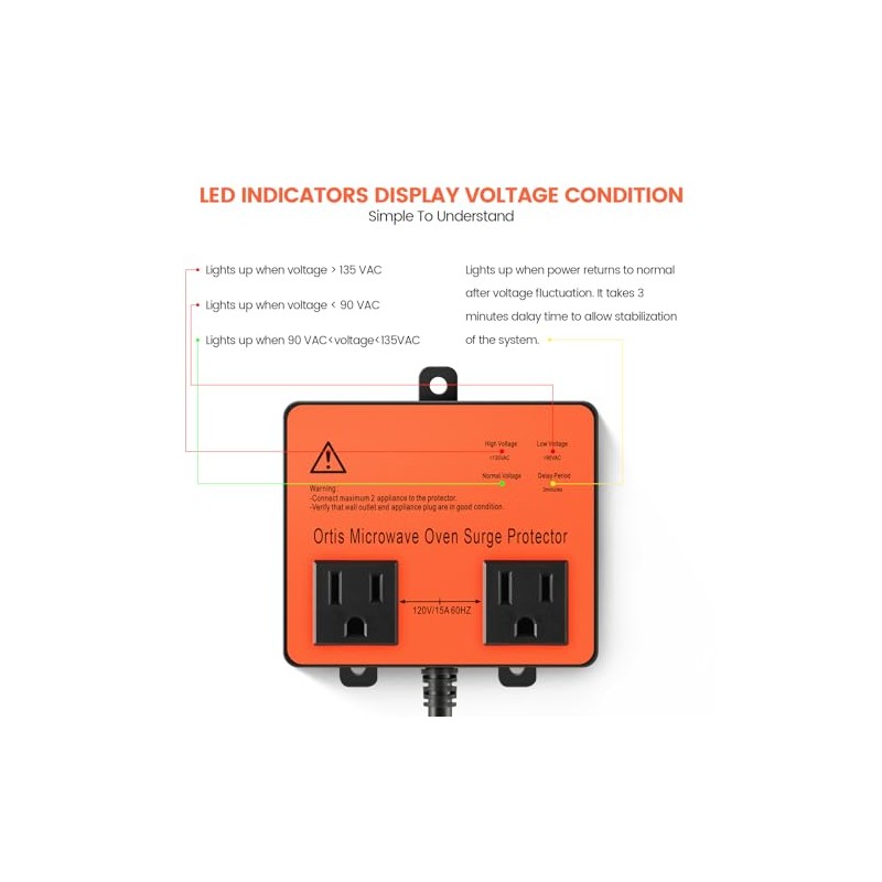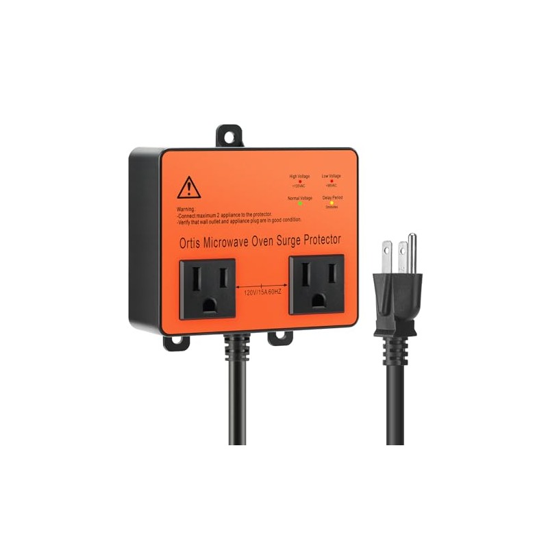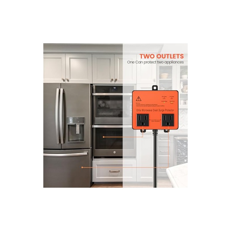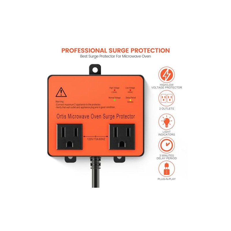 Ortis - Protector contra sobretensiones para microondas, protector de voltaje de doble salida para electrodomésticos con retardo de tiempo, protege contra apagones, picos, sobretensiones instantáneas