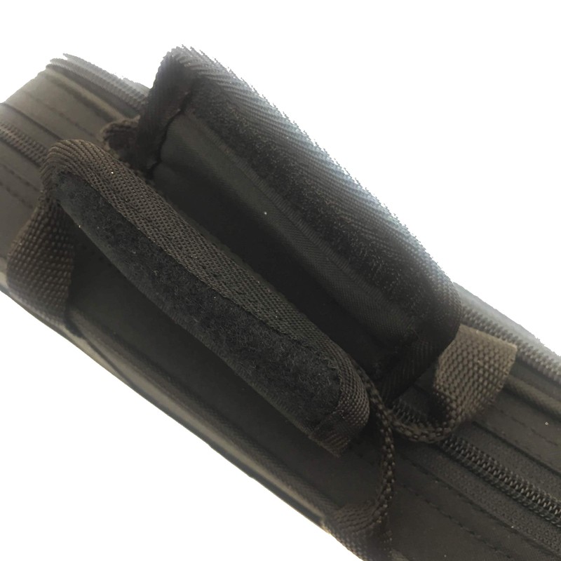 6091 ESTUCHE FLAUTA PICCOLO REF. 8164 Estuches de poliéster negro plastificado. Interior de velournegro y acolchado de poliuretano inyectado. Bandolera de nylon regulable con hombrera acolchada, bolsillo y asas. 24x8x8cm. Peso: 0,51Kg.