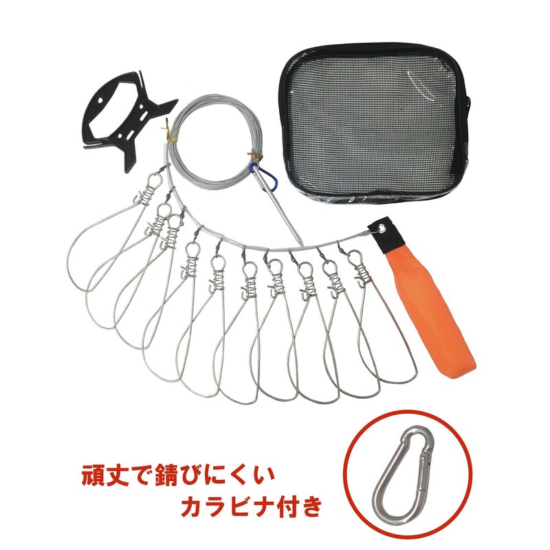 Comes with an orange floater that is highly visible and will stand out from a distance. The one-touch hook also fits a wide variety of fish species, and securely attaches to the mouth of the fish.