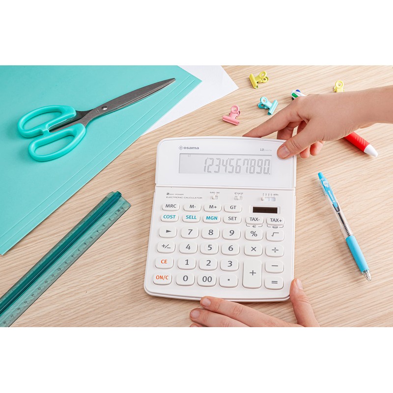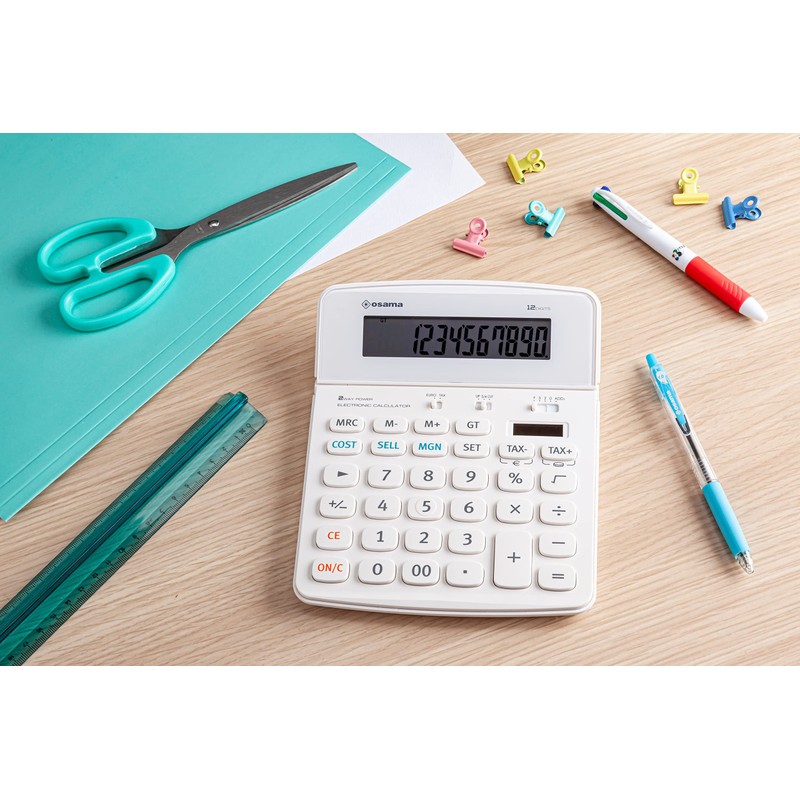 Osama BIG DISPLAY, 12-Digit Desktop Calculator with Large Tilting Display and Cost Sales Margin Calculation Function - White