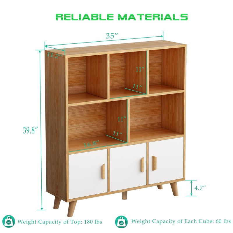 - WELL-MADE - This cubby book shelf is constructed from high-class MDF which is covered with veneer, coupled with the strict selection of solid wood accessories, so that you can feel that this is a well-made storage cabinet during assembly;