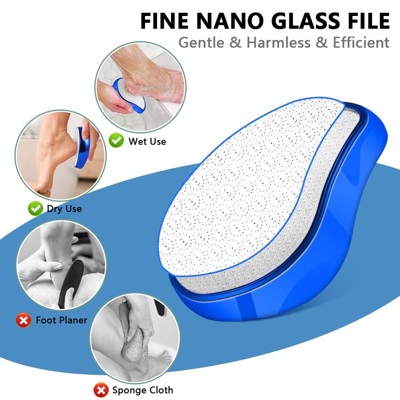 - 【INNOVATIVE NANO GLASS FOOT GRINDER】 —— The dead skin removing foot scrubber is made of high-density fine nano glass, durable, lightweight, stable and waterproof, with a more delicate surface, perfect for shaving off uncomfortable, cracked, dead and hard skin, making foot care look smoother.
