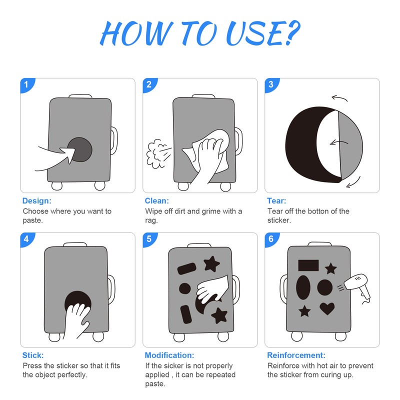 How to use: Tear off the protective film on the back of the sticker to start sticking, waterproof, dustproof and sun-proof, after tearing off the sticker, it can be reused without leaving residual glue. The sticker has no messy or repeated patterns.