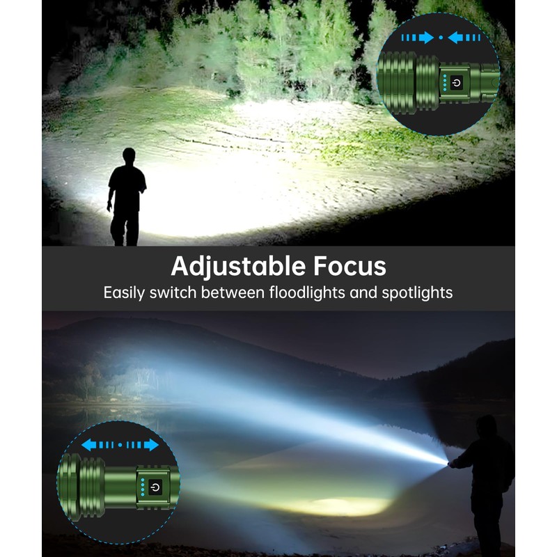 - ใ๐๐ฒ๐ฉ๐-๐ ๐ ๐๐ฌ๐ญ ๐๐ก๐๐ซ๐ ๐ข๐ง๐ & ๐๐๐ญ๐ญ๐๐ซ๐ฒ ๐๐จ๐ฐ๐๐ซใThis high powered flashlight is equipped with a Type-C fast charging interface, bidding farewell to the hassle of frequent battery purchases. This strong flashlight is also equipped with a USB output interface, which can be used as emergency power supply to charge your phone, headphones, and other devices anytime, anywhere.