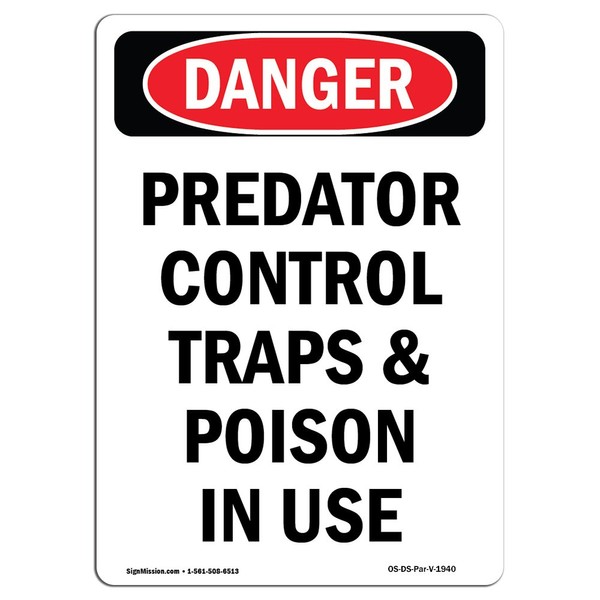 OSHA Danger Sign - Portrait Predator Control Traps | 10 Pack of Decals | Prot...