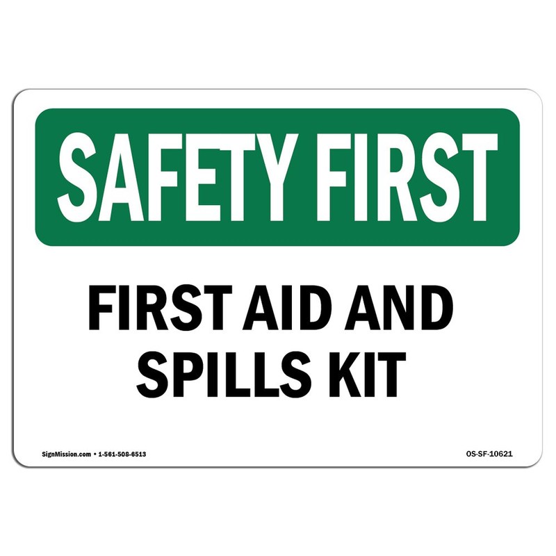 OSHA Safety First Sign - First Aid and Spills Kit | Vinyl Label Decal | Protect Your Business, Construction Site, Warehouse & Shop Area | Made in The USA