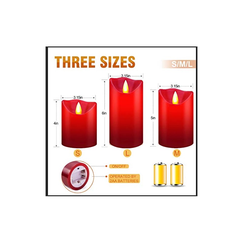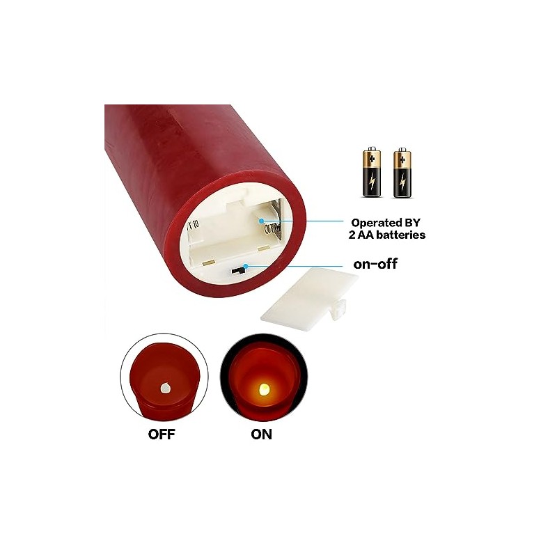 - 4:Reusable Battery Powered - flameless pillar candles are powered by two AA batteries (not included) so you can reuse them time and again with minimal effort.