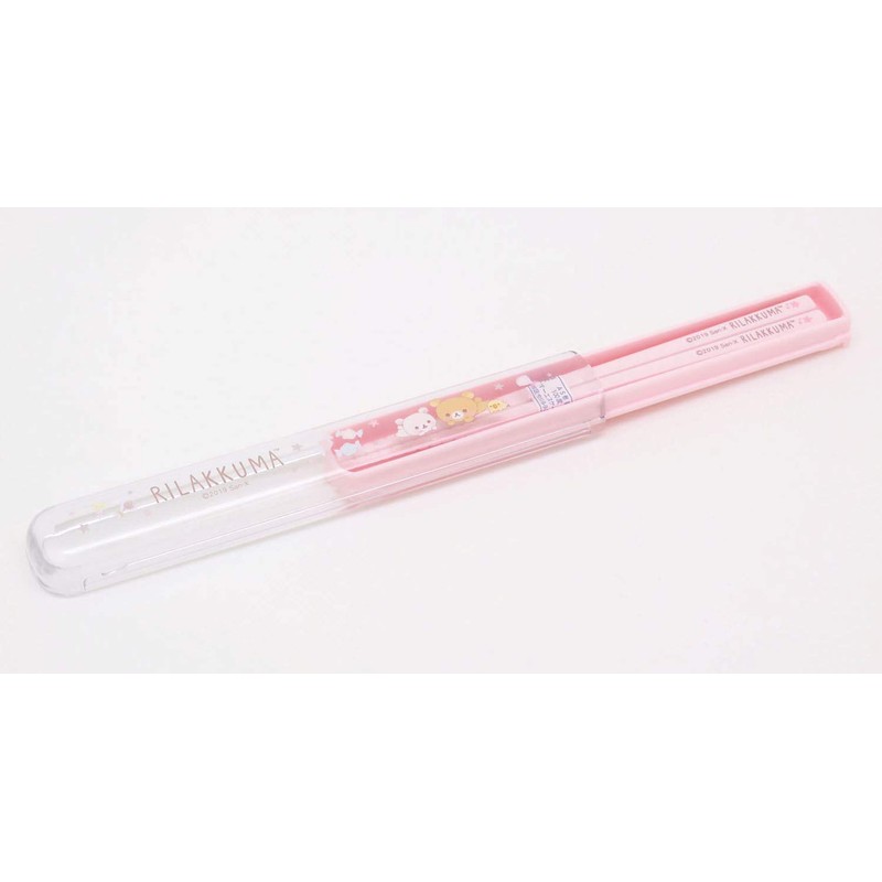 OSK Rilakkuma Lunch Box with Quote Lid and Chopsticks Case Set (Chopsticks 6.5 inches (16.5 cm), Sliding, Made in Japan, Dishwasher Safe, Pink