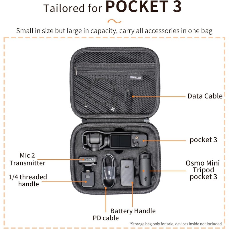 Osmo Pocket 3 Storage Case, Compatible with DJI Osmo Pocket 3, Case, Accessories, Waterproof, Protective Case, Carrying Case, Shoulder Bag, Full Protection, Shock Resistant, Black, Simple