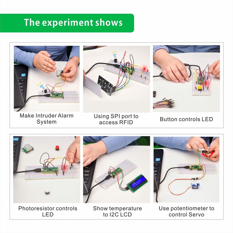 - The kit contains different types of components such as displays, sounds, drivers, controllers and sensors that allow you to learn electronic devices comprehensively.