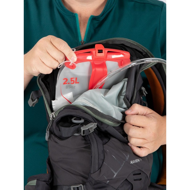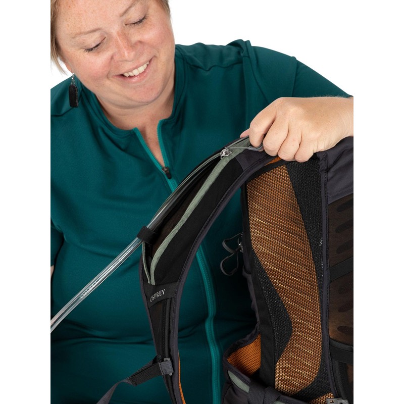 - Hydration sleeve with direct zip access and hose path for easy loading