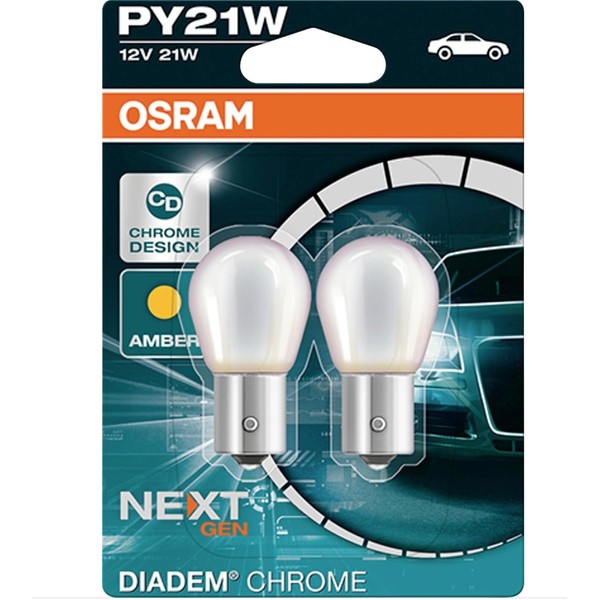 OSRAM DIADEM CHROME PY21W halogen, signallamp, turn signal light, 7507DC-02B, 12V, double blister 2 pieces