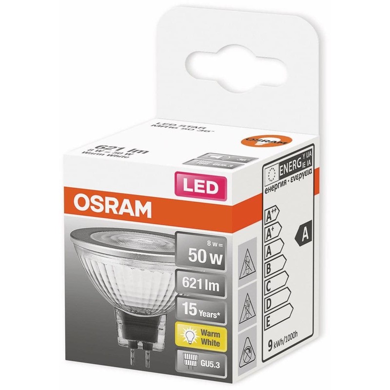 Osram OSRAM MR16 LED reflector lamp with GU5.3 base, warm white (2700K), glass spot, 8W, replacement for 50W reflector lamp, LED STAR MR16 12 V