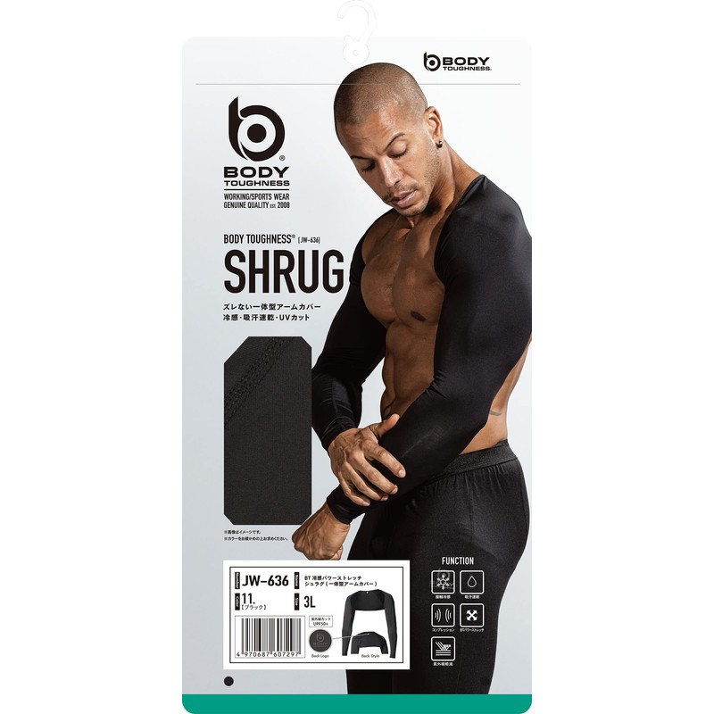 Otafuku Glove JW-636 Summer Arm Cover, Shrug (Integrated Arm Cover, Cool Touch, Sweat Absorbent, Quick Drying, Compression, UV Protection, Black, Size 3L