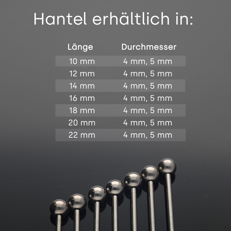 • Stand out from the crowd with our tongue piercing and nipple piercing - boring? We have the solution! Piercings that allow you to stand out from the crowd and express yourself. We offer a wide range of titanium piercings: tongue piercing and nipple piercing for women and men in the form of a dumbbell with the thickness of 1.6 mm, length of 12-22 mm and ball size 4 mm and 5 mm.